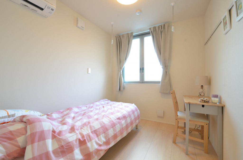 個室設備ベッド(寝具はついていません)、デスク、チェア、エアコン、インターネット、カーテン、照明