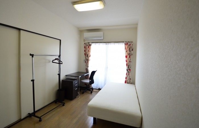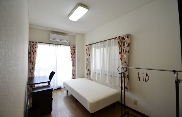 | 個室設備 | エアコン、ベッド、机、椅子、パイプハンガー、カーテン、ごみ箱 |